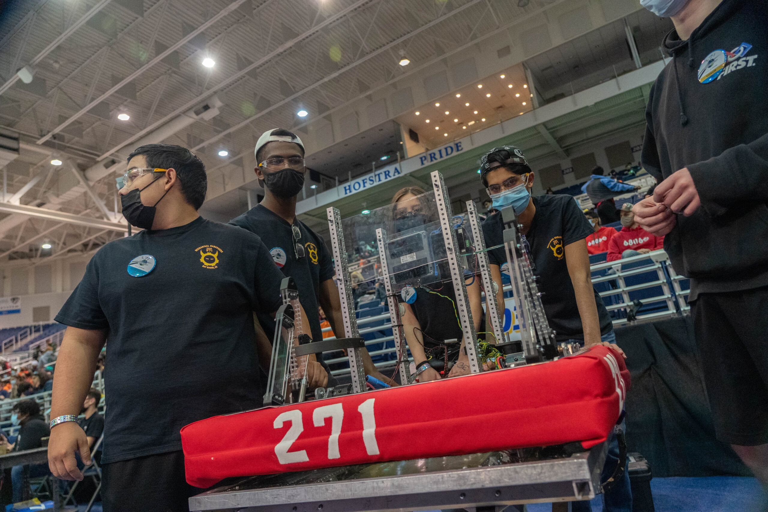 Team 271, the Mechanical Marauders, was founded in 1998 as the “Bell Atlantic Robotics Team.” In 2000, we became known as the Mechanical Marauders. Since our inception, we have grown from a small group of 15 students to a thriving team of nearly 70 members from Bay Shore Senior High School and Bay Shore Middle School. Over the years, we have achieved numerous milestones and have been recognized for our excellence in various aspects of robotics and community engagement.